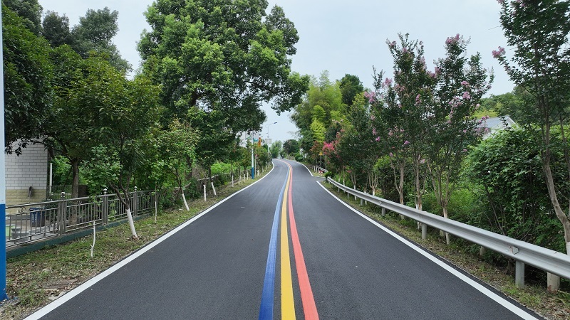 “其实,道路最初设计的颜色就是黑与白。为更好起到旅游带动作用,我们在部分路段试刷了彩色路,没想到被频频点赞,所以就有了这条‘彩虹路’。”湘阴县交通运输局负责人介绍,“天鹅山旅游公路”并不只是在道路中间简简单单画上彩虹分隔线,而是一条生态、文化、旅游、富民的相融之路。
