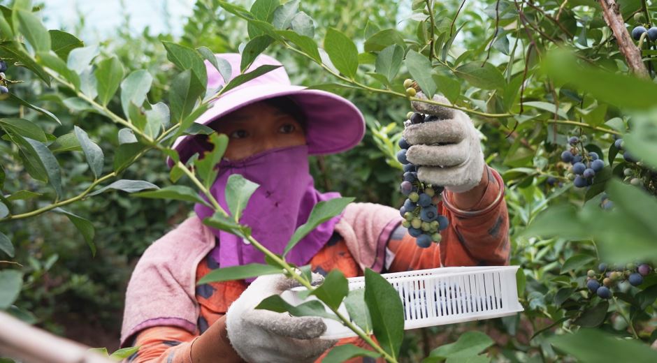 “我们这里的蓝莓有杰兔、薄雾、灿烂等品种,会在不同的时间成熟,从5月份开始,一直可以持续到8月份,目前成熟的品种是灿烂,它的特点就是果实饱满、果粒大。”泸阳镇和平村蓝莓基地技术经理安乔生介绍,“为了让游客有更好的体验,我们还利用蓝莓的冷藏和加工技术,制作蓝莓果干、蓝莓酒、蓝莓果酱等农副产品,努力打造一个集鲜果种植、蓝莓深加工、农业科普和研学、旅游观光于一体的综合性生态农业基地。”