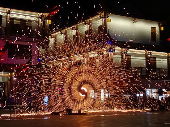 现场观众热情地挥舞手中的荧光棒,热情跟唱着《花房姑娘》《海阔天空》……一首首经典歌曲乘着夏日晚风动情演绎,博得现场观众阵阵掌声。最后,绚烂的铁花焰火表演点亮了武陵源的夏夜,更是将观众的欢呼推向最高潮,大家纷纷掏出手机定格美好瞬间。“音乐节演出满足年轻人的喜好,非遗演出又很有传承意义,这一次,张家界真的很浪漫。”市民潘女士如是说。