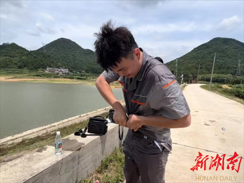 众人进行涵洞检测,水利基层特岗生谢博毅却在跑上跑下进行专业化拍摄,生怕错过这群青春“逆行者”的每一帧精彩画面;对紫外线过敏的蒋叶莹,做足了防护,还是被毒辣的太阳在手臂上“蜇”了一大块红色斑疹,但她没有吭声闪躲,而是默默以手机记录眼前的情景;罗炜懿、刘赛、钱秀文则全心全意做好后勤服务……烈日在炙烤,不用俯身就能闻到青草被烤出的味道。“涵禹号一定要争气。”大家都在期待着它能早点交出成果。