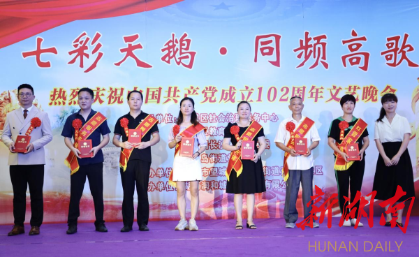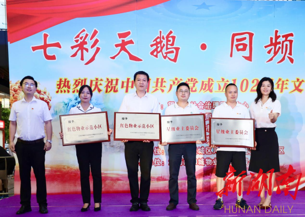 华声在线·新湖南客户端7月3日讯(通讯员 邓姣英)2023年6月30日晚,由望城团区委、望城区社会治理服务中心、望城区教育局、望城区月亮岛街道党工委指导,月亮岛街道天鹅塘社区党总支主办和湖南润和城物业服务有限公司承办的“七彩天鹅 同频高歌”迎“七一”文艺汇演在滨江府小区“七彩天鹅风情街”隆重举行。活动分三个篇章进行,通过情景剧、舞蹈、合唱、舞龙等形式讲述中国故事、践行初心使命、展望美好未来。