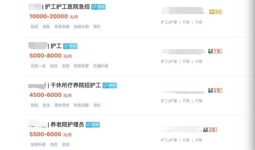 医院护工同样存在不小的缺口。记者在多家医院采访发现,普遍存在护工短缺问题。“现有护工队伍根本难以满足需求,经规范培训取得资质认证的护工则更少,有时候我们发现一些保洁员都转行去做了护工。”华北某市三甲医院负责人表示。