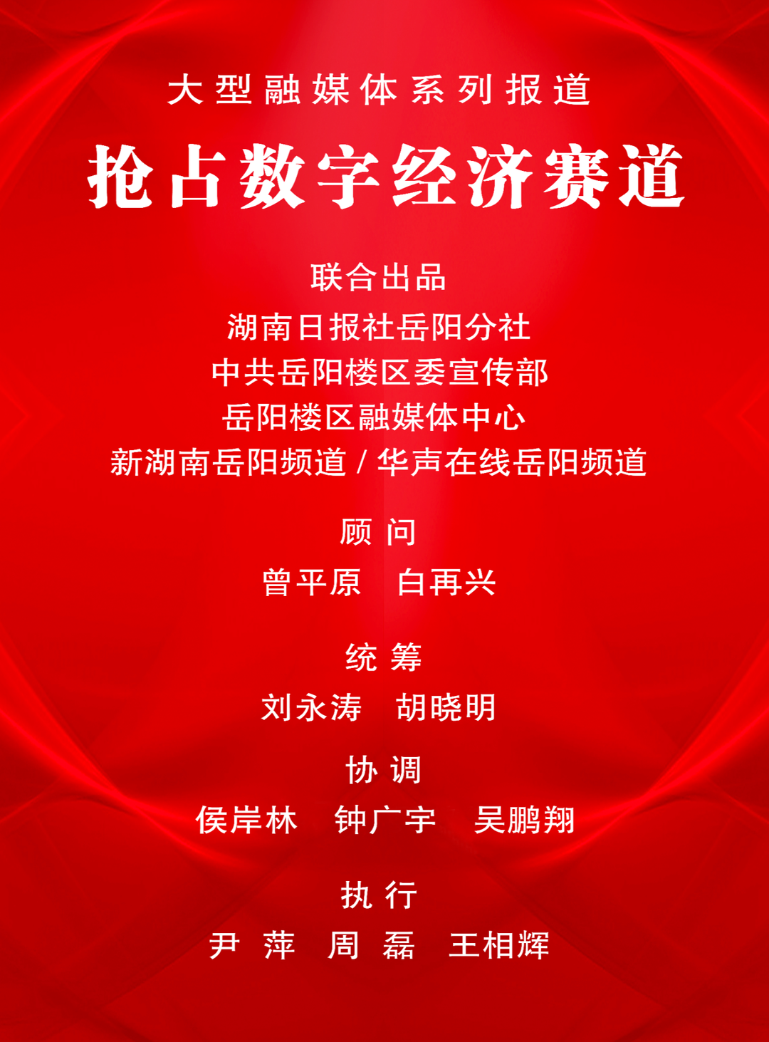 湖南日报社岳阳分社携手岳阳楼区委宣传部,新湖南岳阳频道、华声在线岳阳频道与岳阳楼区融媒体中心联动协作,倾情推出“抢占数字经济赛道”大型融媒体系列报道,呈现岳阳楼区在数字经济赛道上的新作为新气象。 敬请关注。