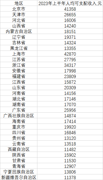 国家统计局网站8月1日公布了31个省份上半年居民人均可支配收入情况。从数据来看,有8个省份上半年人均收入超过了2万元,其中京沪超过了4万元。