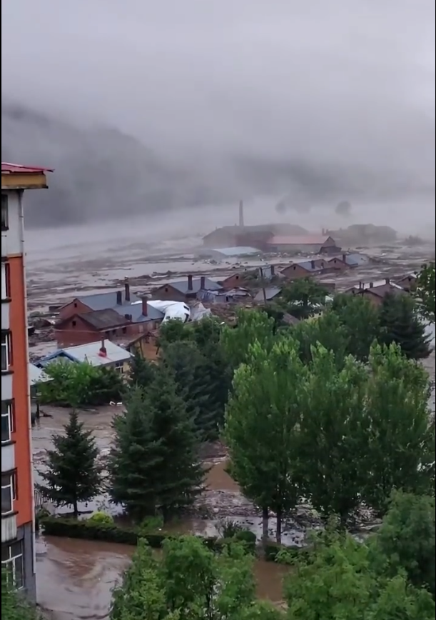 黑龙江省牡丹江市东京城林业局尔站经营所生活区的洪水。 截屏图
