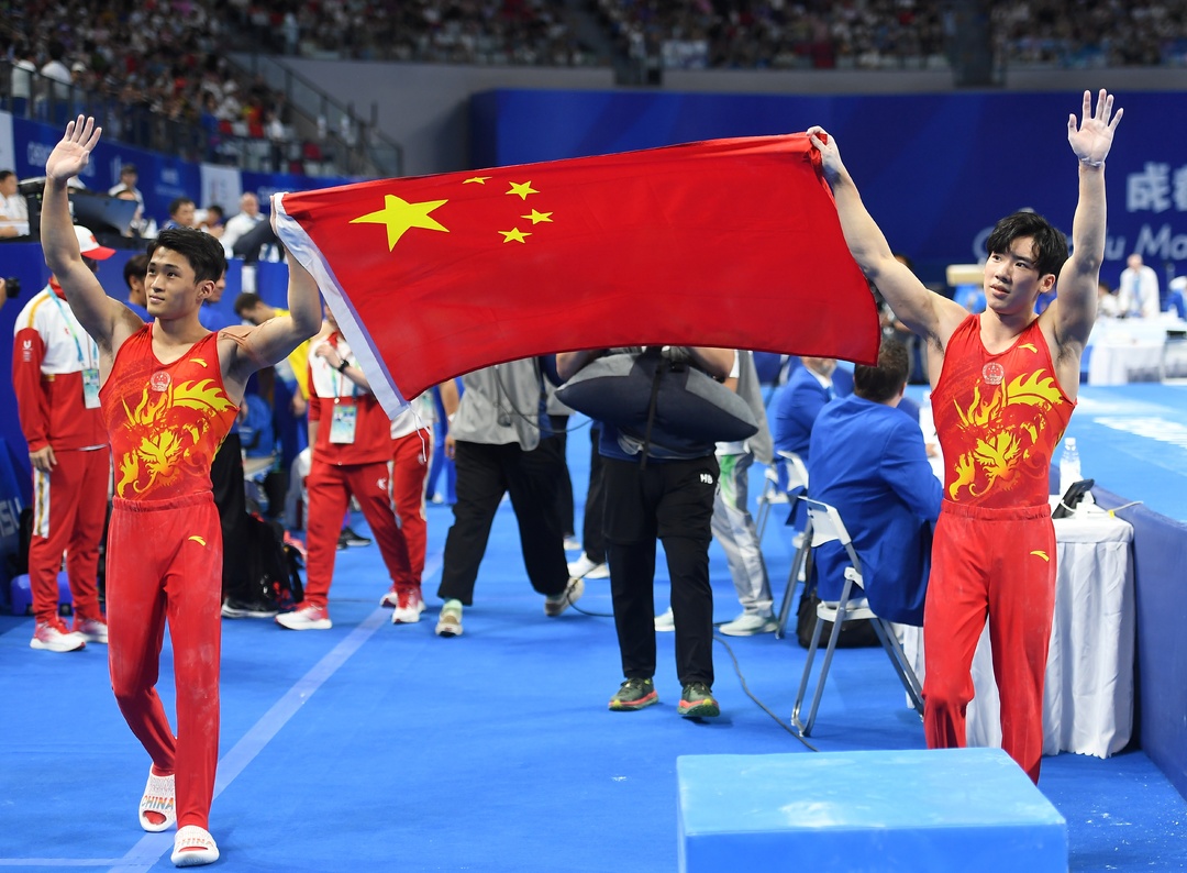湖南日报·新湖南客户端8月4日讯(记者 蔡矜宜 摄影 傅聪)在刚刚结束的成都大运会体操男子个人全能决赛中,23岁的长沙伢子张博恒以总分86.733分,夺得冠军。这是张博恒在成都斩获的第2枚金牌,也是湖南运动员在本届运动会上收获的第3金。