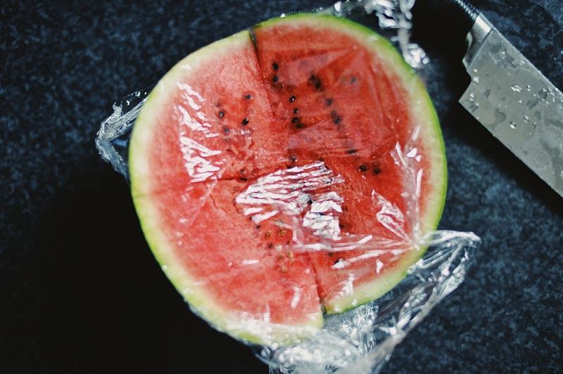 夏季食物不好保存,包上保鲜膜放入冰箱是食物保鲜的常规办法。最近刷到了一些关于保存西瓜的神操作,吃不完的西瓜不仅被包上了保鲜膜,还放了两瓣大蒜,原因是大蒜可以帮西瓜杀菌,这样做能延长西瓜的保质期。