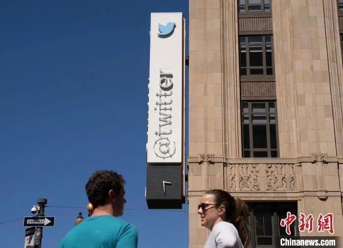 当地时间7月24日,美国旧金山推特总部大楼上的公司标识已被部分拆除。中新社记者 刘关关 摄