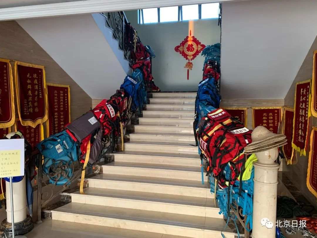 这几天队员们仍在防汛救灾,队里一楼至二楼的楼梯上,挂满了他们这些天用于水域救援的浮力马甲。这些马甲跟随队员们一起冲锋陷阵,其中就有落水后幸存下来的队员“懂事儿”的一件。“其实我媳妇儿都不知道我落水后的细节和遭遇。”
