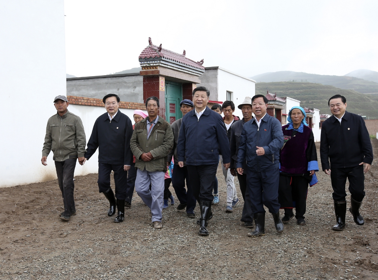 2016年8月,总书记来到青海省互助土族自治县班彦新村,走入农户新居察看住房面积、结构、建筑质量,询问施工进展。他和土族贫困户吕有金一家人围坐在一起,看乡亲们昔日居住的班彦村视频。出入不便、严重缺水,视频道尽了班彦村易地搬迁前“一方水土养不了一方人”的困窘。