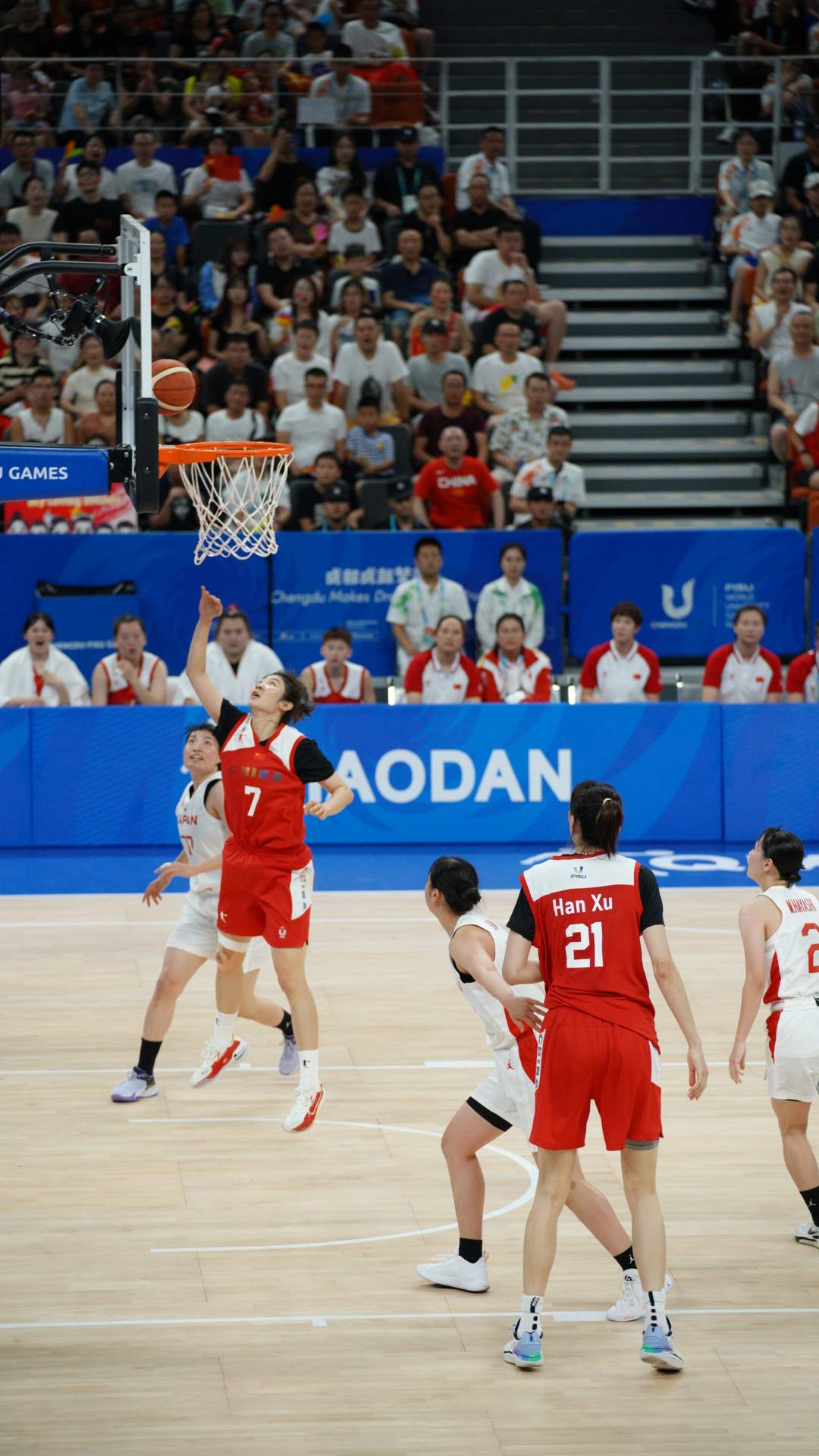 8月5日晚,成都大运会女篮决赛,中国队99比91战胜日本队,获得本届大运会女篮项目金牌。