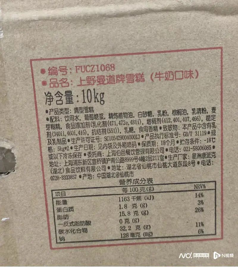 此前,根据多位网友晒出的茉酸奶制作原料,茉酸奶产品使用了一款名为“上野曼道牌雪糕”的原料,委托商是茉酸奶的母公司上海伯邑餐饮管理有限公司,该款雪糕的配料包含“葡萄糖浆、精炼植物油、乳清粉”等。