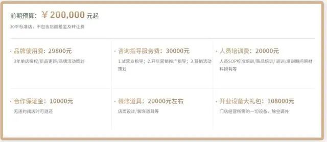据茉酸奶官网显示,加盟费用,具体包括品牌使用费、咨询指导服务费、人员培训费、合作保证金等。以30平米的标准店为例,在不包含店面租金及转让费的情况下,前期预算至少得20万元。
