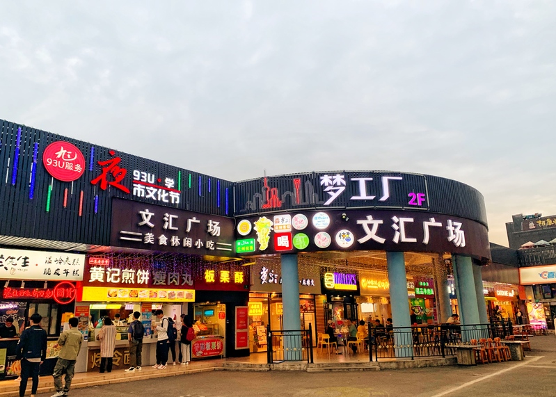 不同的是,8月的文汇路,学生纷纷放假后,几乎有一半的门店歇业,门口还贴着类似“开学后见”的标识。而8月的大学路,却终日喧闹,傍晚更甚。