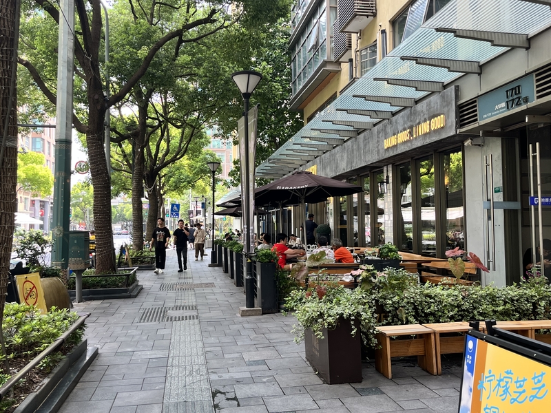 沿街两排外摆位更是将氛围感拉满。不论走到大学路上哪一段,悠闲坐着的人们、冒着香气的小食和咖啡,都比炫目的广告牌更吸引人。