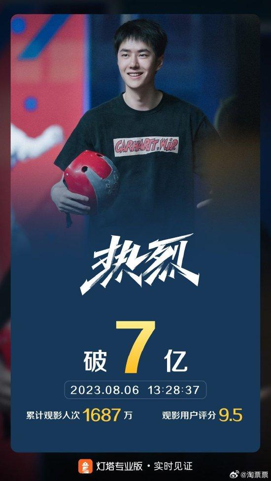 8月6日,据灯塔专业版,影片《热烈》上映第10天,实时票房突破7亿!本片由大鹏执导,黄渤、王一博领衔主演,正在热映中!
