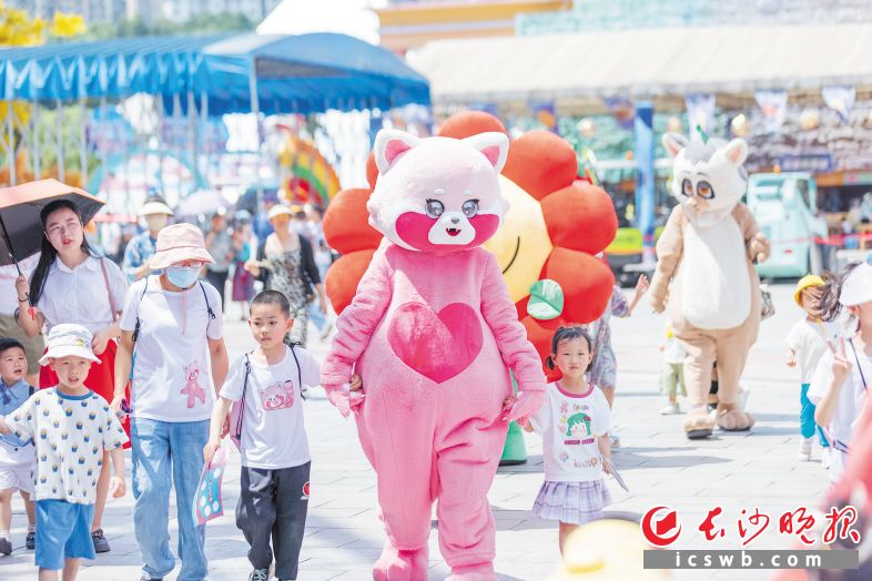 这个暑假,长沙延续上半年的热度,文旅市场持续火爆。图为长沙世界之窗,小朋友们正与人偶互动。长沙晚报全媒体记者 冯启阳 摄