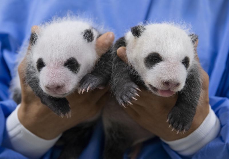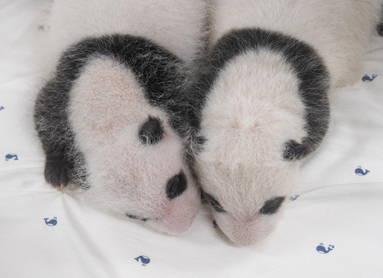 太可爱了!在韩大熊猫双胞胎满月照曝光