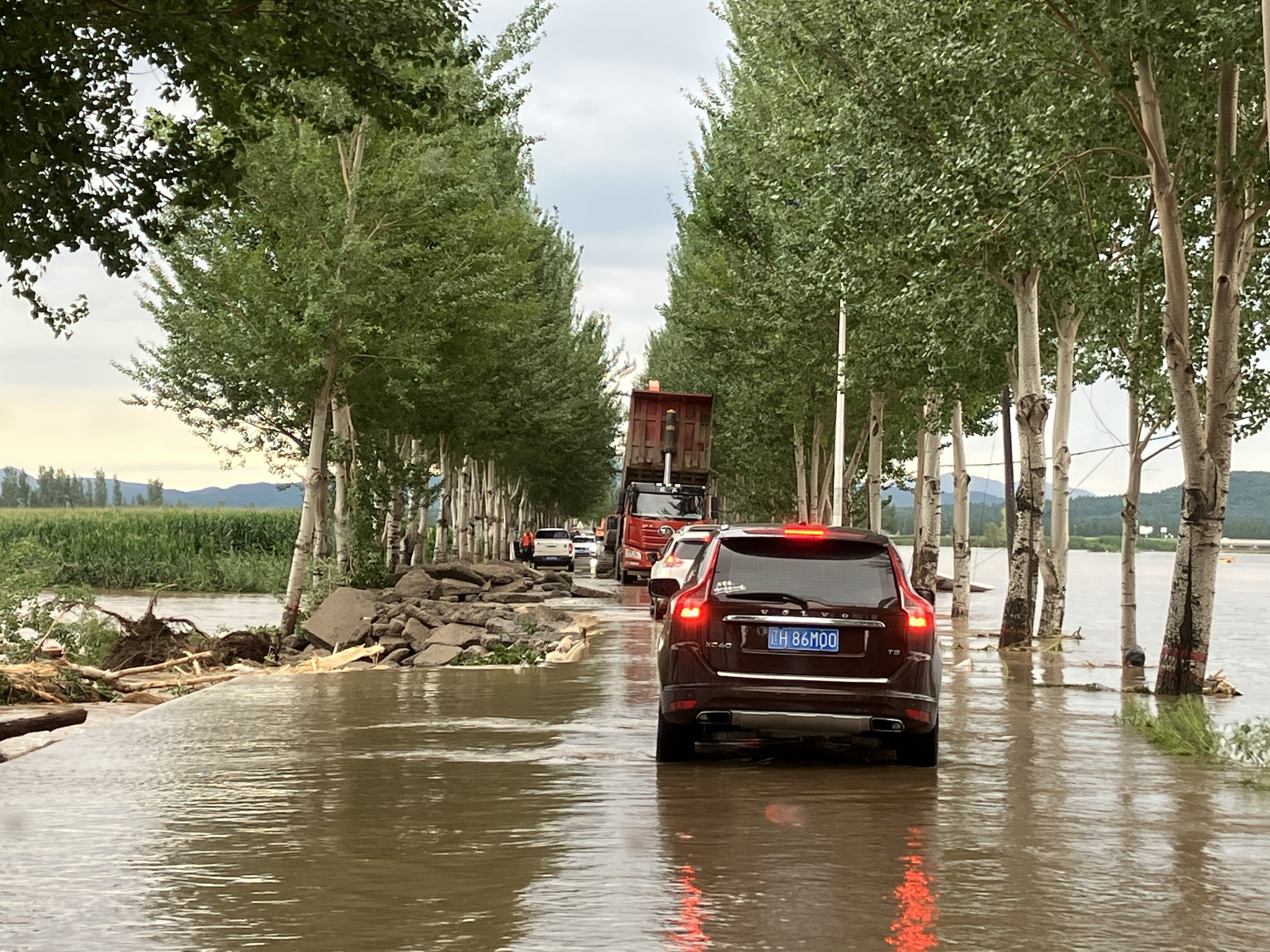 五常市东南方向拉林河沿岸的向阳镇、沙河子镇受灾严重。8月6日,澎湃新闻记者经五常市城区,前往该市最南端的沙河子镇,须经217县道、163县道、165县道,过向阳镇后,163县道与165县道基本是顺山势与拉林河平行而建,多处路段河水已上涨接近路面。