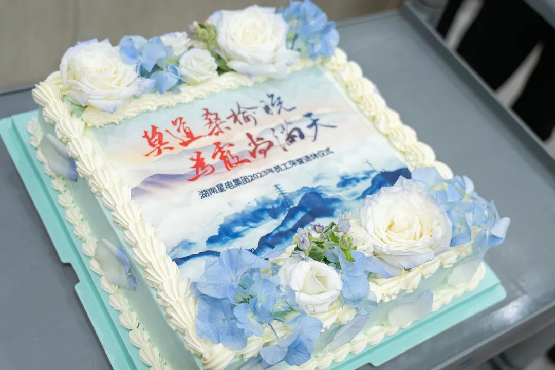 工会领导切祝福蛋糕,合影留念,定格下了美好珍贵的瞬间。