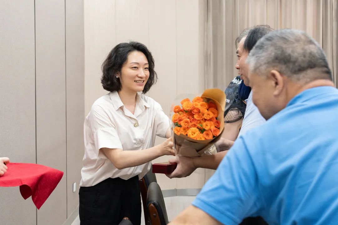 穿上熟悉的职业装,讲述着入集团的亲身经历、暖心故事,手捧鲜花和纪念章郑重道别……