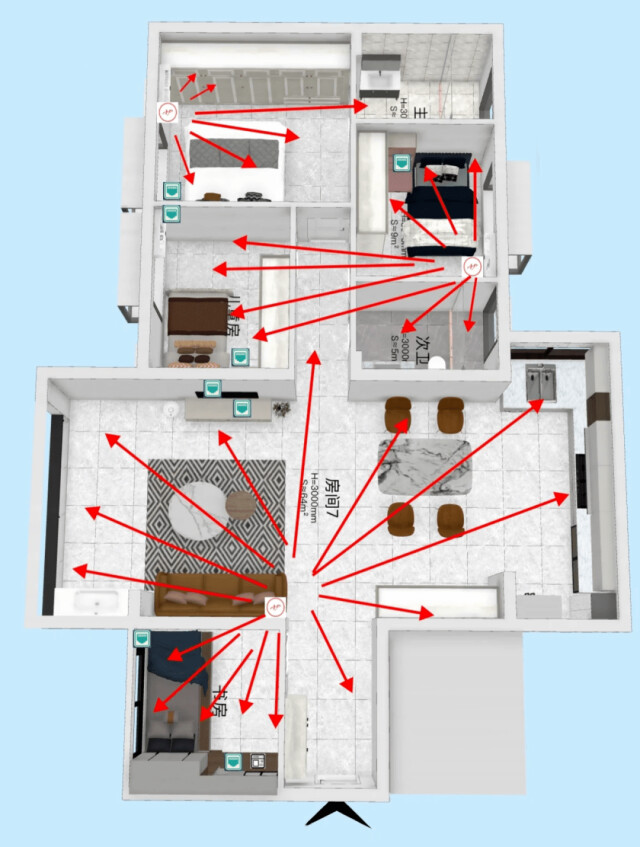 当然,对于超大户型或别墅多层房型,则可以增加多个路由器,以辐射所有房间区域。