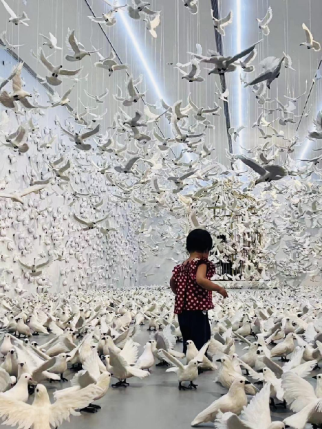 一万只洁白的鸽子飞临上海宝龙美术馆,一颗颗鲜红的樱桃静静躺在宝龙美术馆的一张床上,等待周艺文先生的阐释。