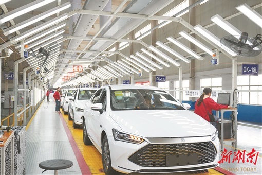 (比亚迪长沙基地总装车间,工人在新能源汽车生产线上忙碌。(资料图片)湖南日报全媒体记者 辜鹏博 摄)
