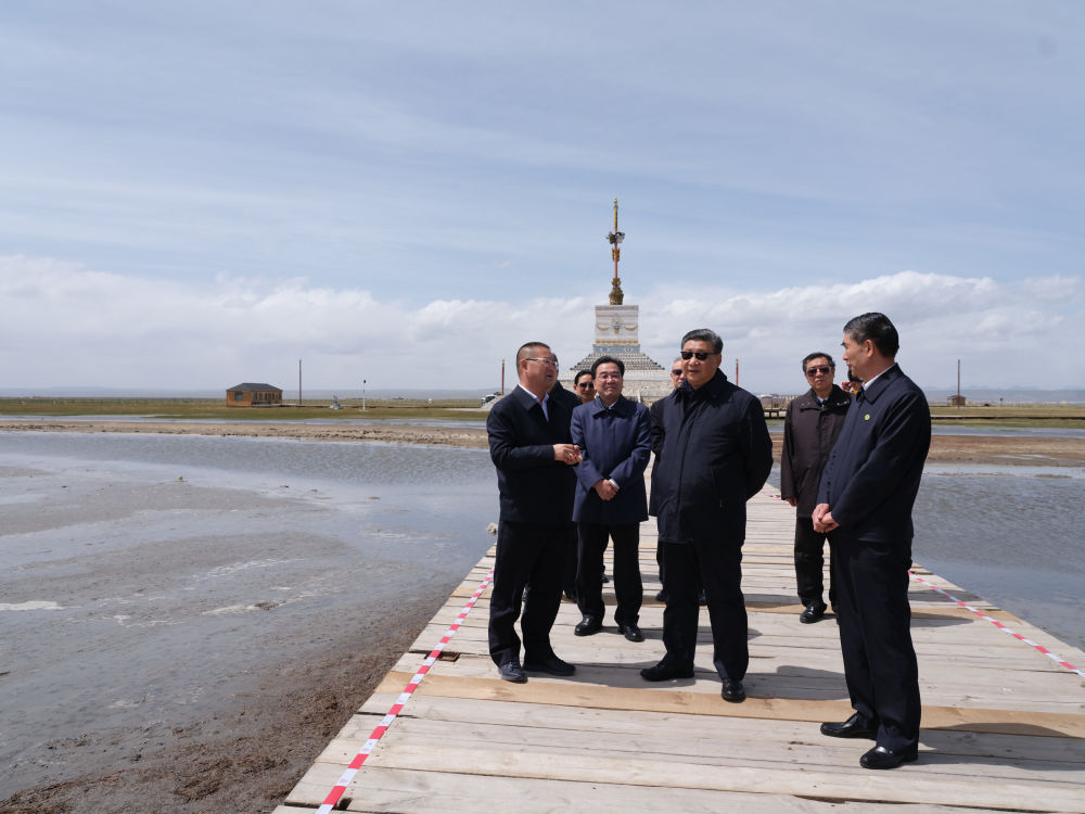 2021年6月8日下午,习近平在青海海北藏族自治州刚察县青海湖仙女湾考察。