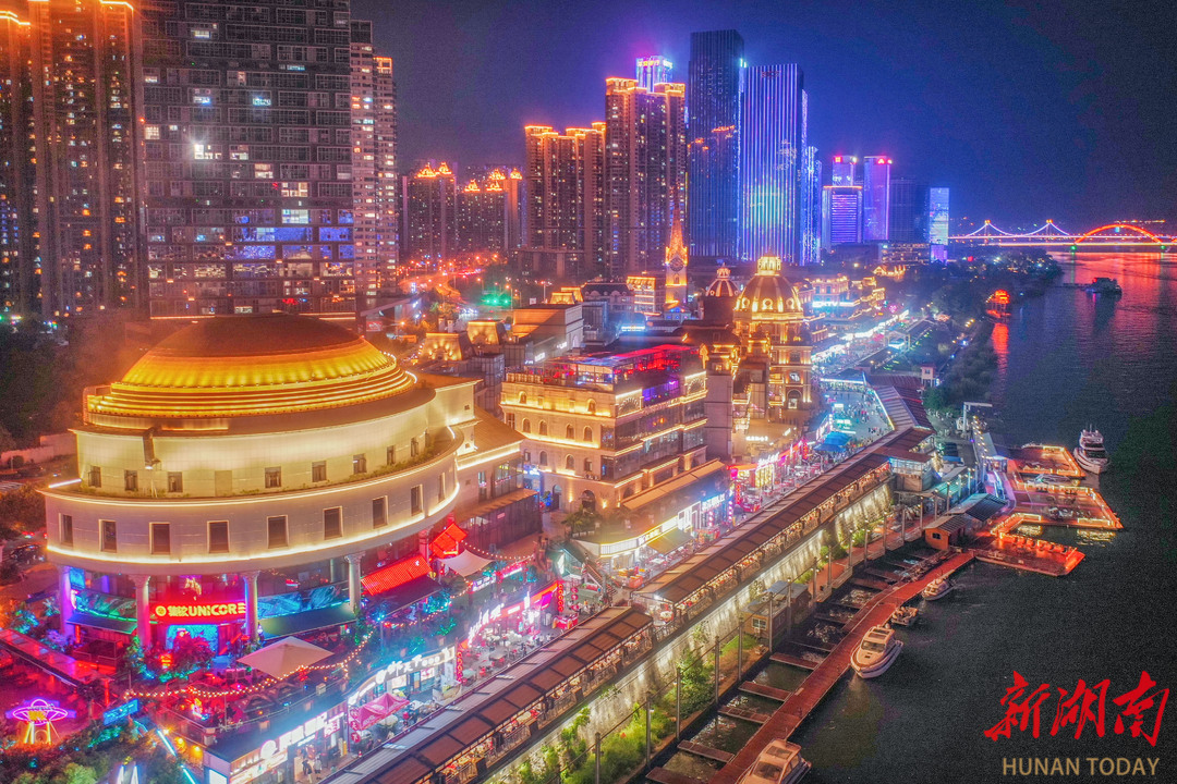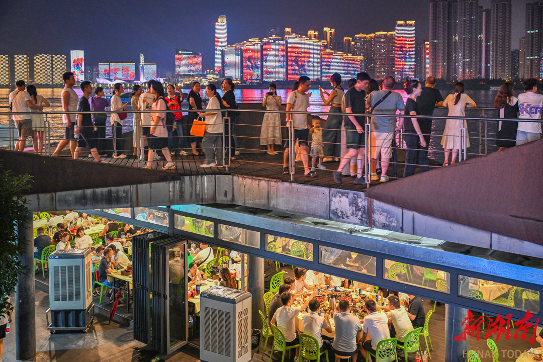 8月12日晚,长沙市渔人码头灯火通明,热闹非凡,烟火气十足。湖南日报全媒体记者 郭立亮 摄