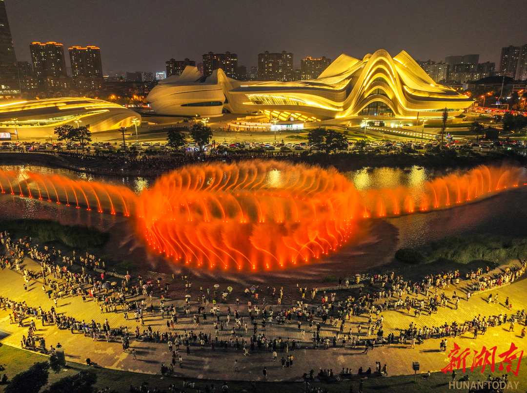 8月13日晚,长沙市梅溪湖音乐喷泉人气火爆。湖南日报全媒体记者郭立亮摄