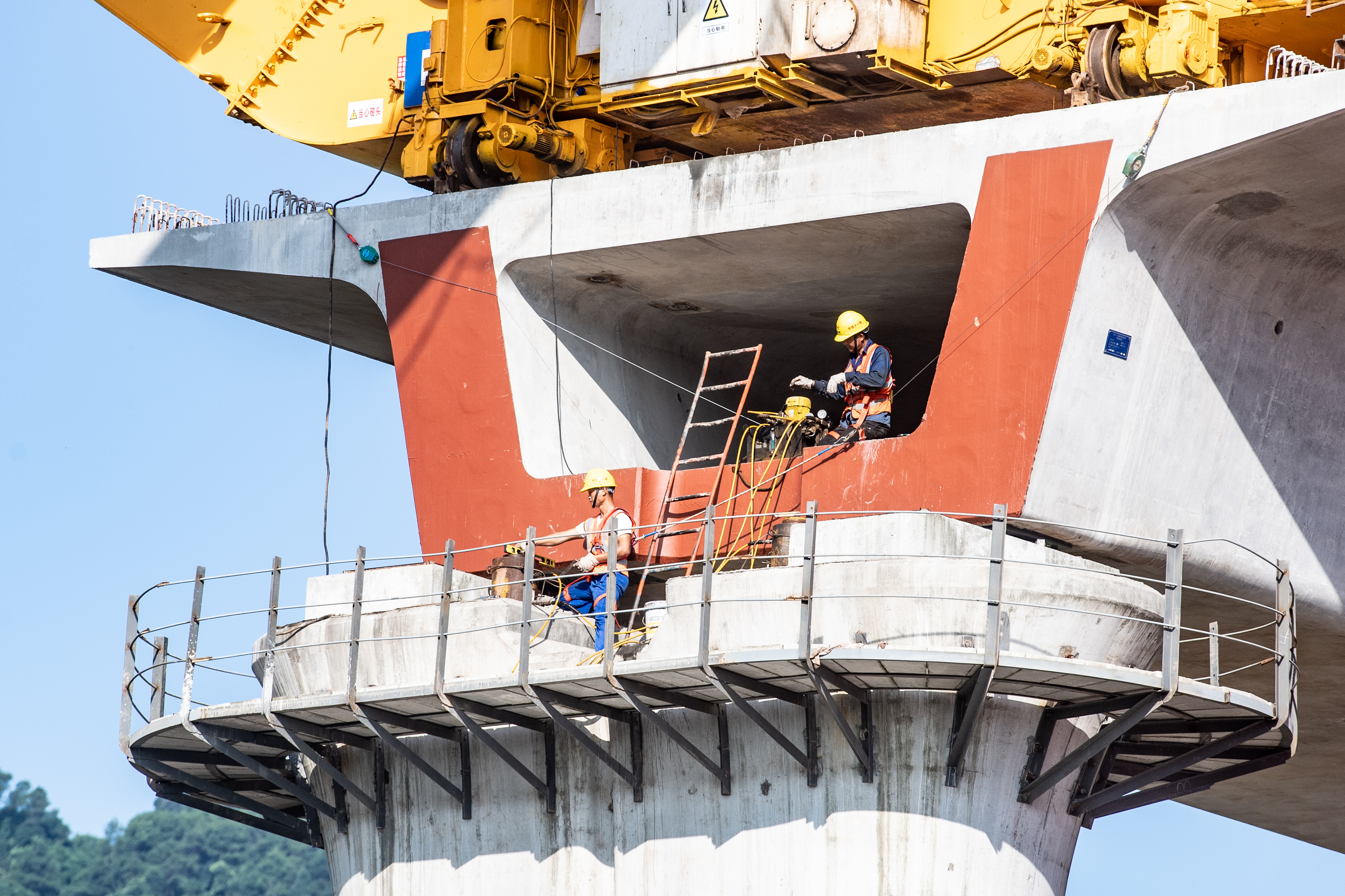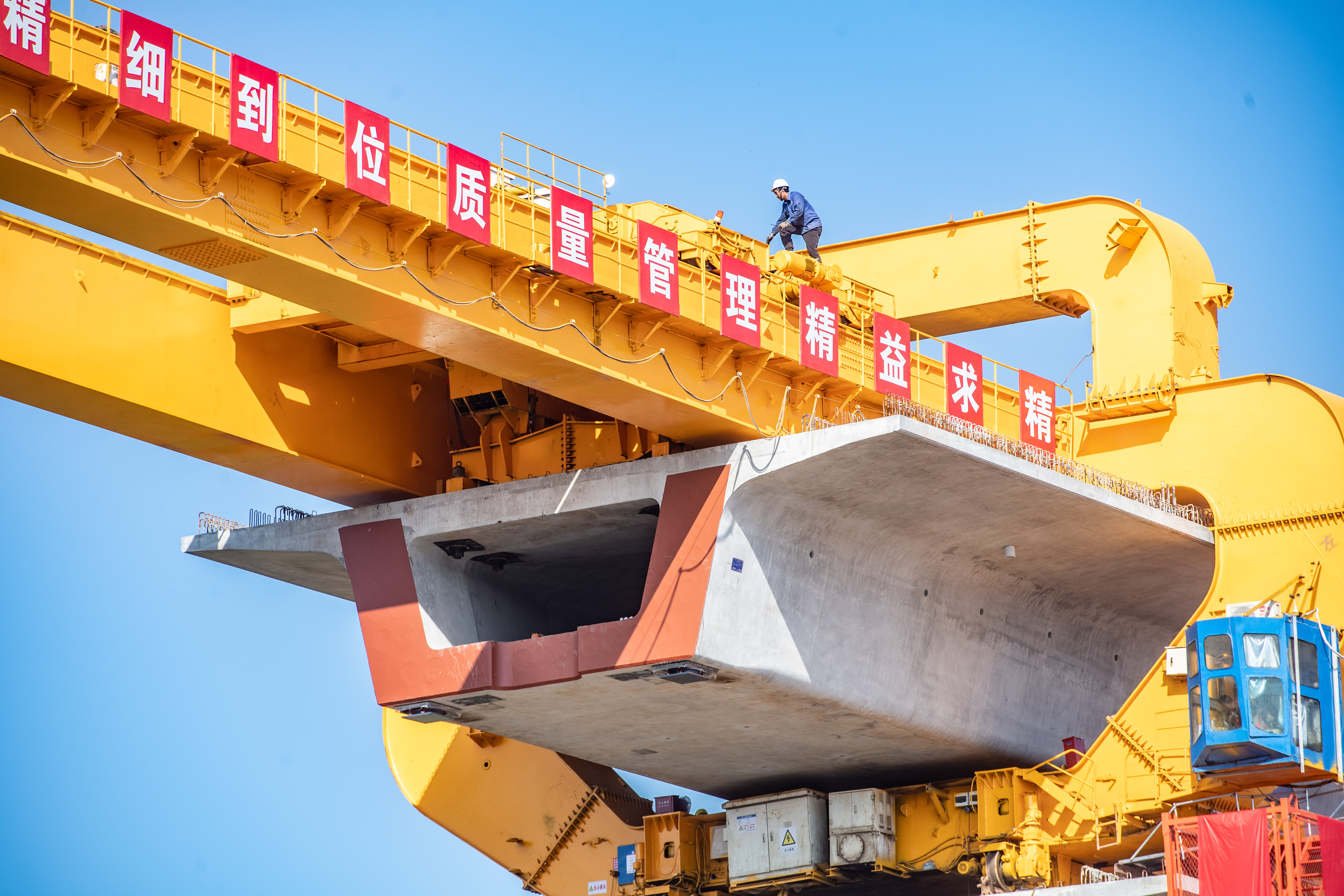 8月15日,在中铁十一局集团承建的渝湘高铁重庆段建设现场,随着作业人员将首榀重790.25吨的大型箱梁精准架设在箭杆湾双线特大桥19号至20号桥墩上,标志着渝湘高铁重庆段箱梁架设全面展开。