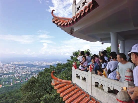 8月16日,郴州市苏仙岭景区对公众免费开放首日,大批市民、游客来苏仙福地打卡消暑,看远景吹细风。图/通讯员周建生