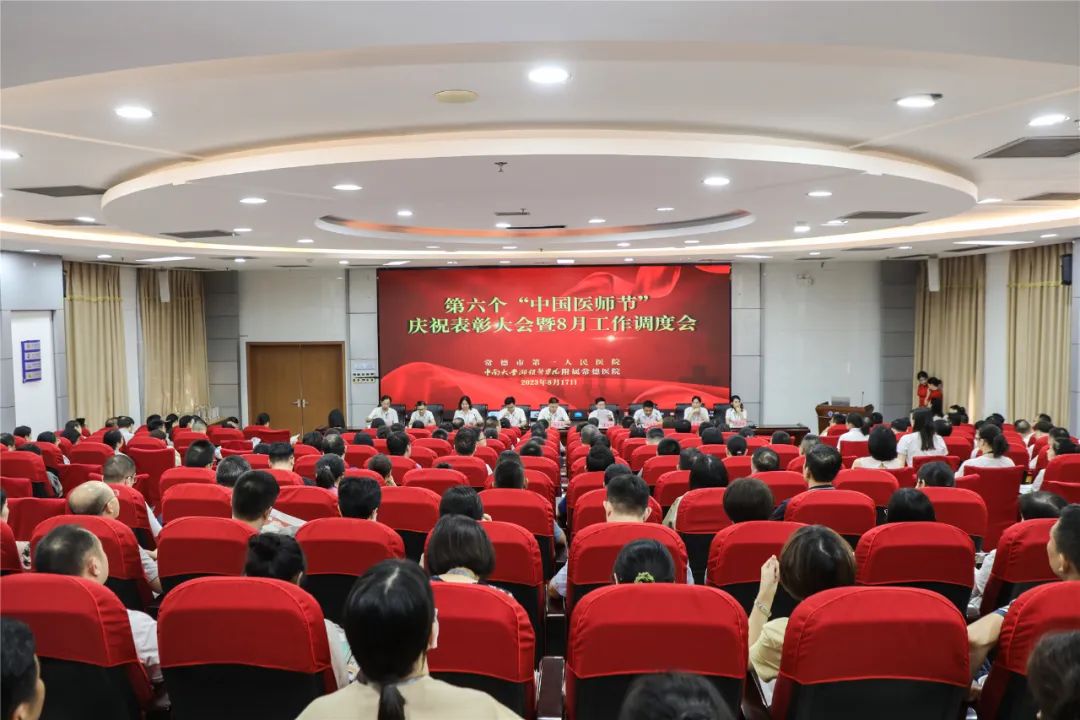 2023年8月19日是第六个中国医师节,也是党的二十大召开后的首个中国医师节。今年的节日主题是“勇担健康使命,铸就时代新功”。8月17日下午,常德市第一人民医院召开第六个中国医师节庆祝表彰大会。院领导,职能科室负责人,医疗、医技科室正副主任,获奖医生,护理人员代表参加此次大会。