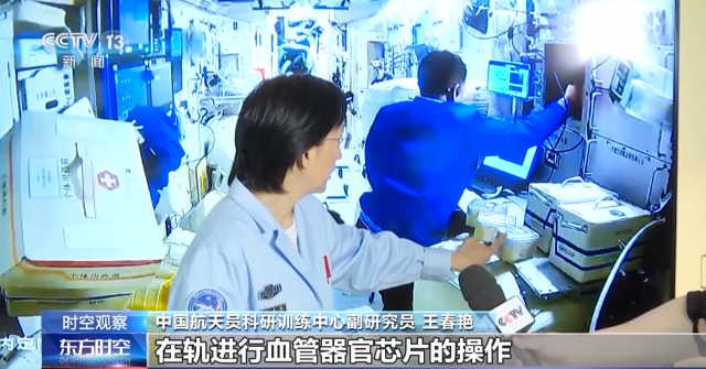 中国航天员科研训练中心副研究员 王春艳:视频中,航天员张陆在神舟十五号任务中在轨进行血管器官芯片操作,这个芯片是我国自主独立研制的,在神舟十五号任务中,我国第一次在轨实施了器官芯片项目,也是国际首次在轨开展人工血管芯片研究,它也标志着我国成为世界上第2个具备在轨开展器官芯片研究能力的国家。
