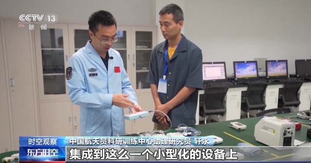 中国航天员科研训练中心助理研究员 轩永:我们做了一个高度集成化的设计,这个就是我们的12导心电仪,它集成了常规的12导心电、运动心电、心电holter(动态心电图)、急救心电4种设备,通过集成化设计,集成到这么一个小型化设备上来。