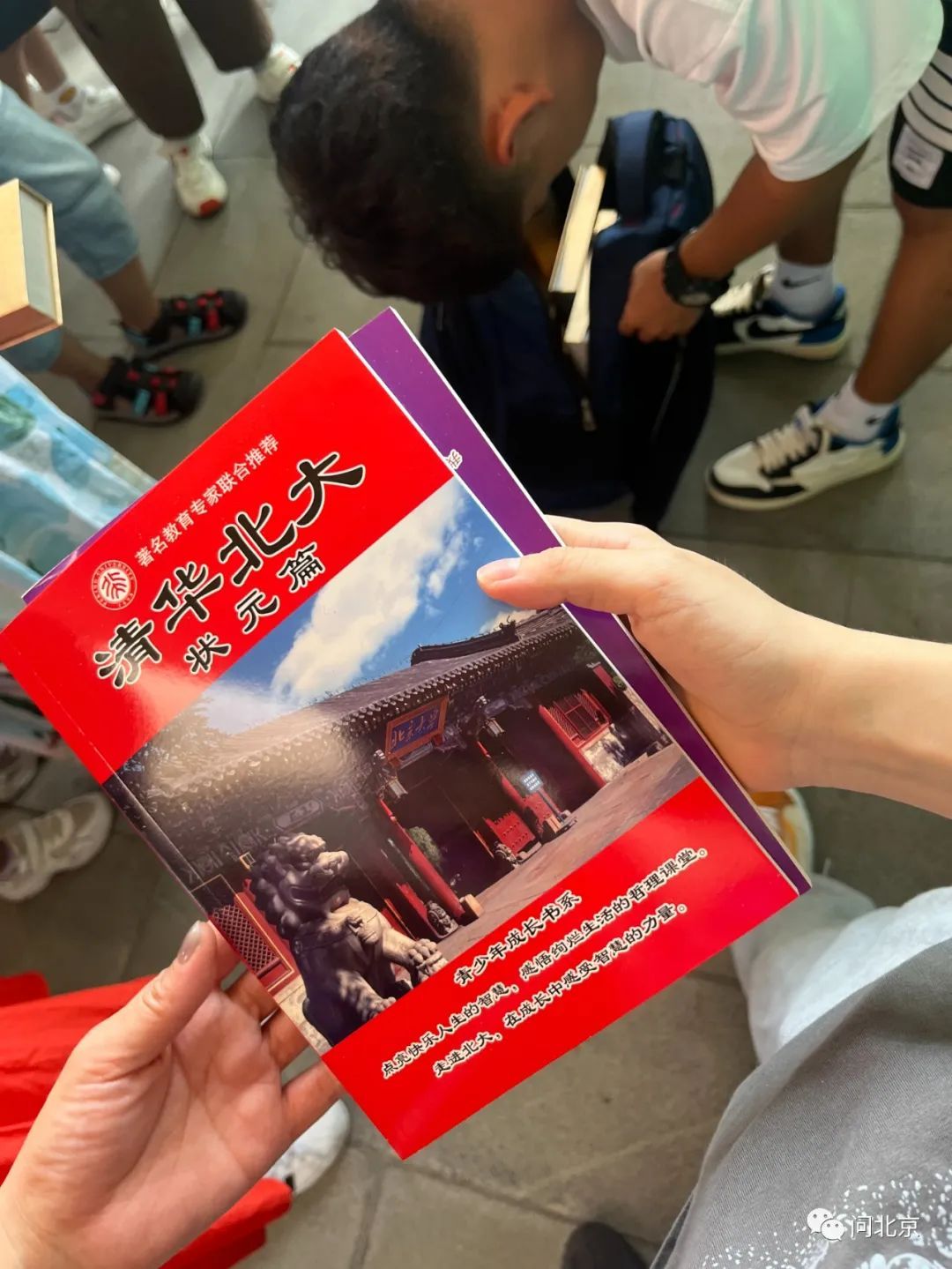 随后,大约有七、八位家长掏出现金,购买了相关纪念品。青年售卖的名为《清华北大状元篇》、《清华北大学习篇》的手册,尤其受到欢迎。记者查看了两本“手册”后发现,上面既没有标注出版社,也没有刊号、书号等编码。书中有一些“高考状元”的个人资料,以及他们的署名文章,文章内容大多是关于学习励志、学习方法的。