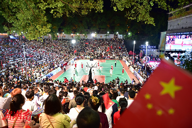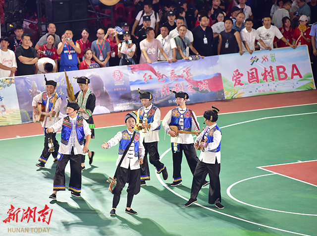 湖南“村BA”总决赛期间的民俗表演。王森 摄