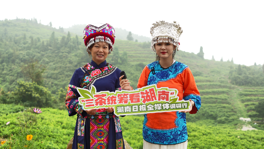 新湖南客户端8月22日讯(记者 周佳)山峦重重,云海层层,漫山遍野翠绿的莓茶正尽情舒展着腰身,8月21日,“三茶统筹看湖南——湖南日报全媒体调研行”活动走进“中国古莓茶之乡”永顺县,探寻“千年土家茶”永顺莓茶高质量发展的奥秘。