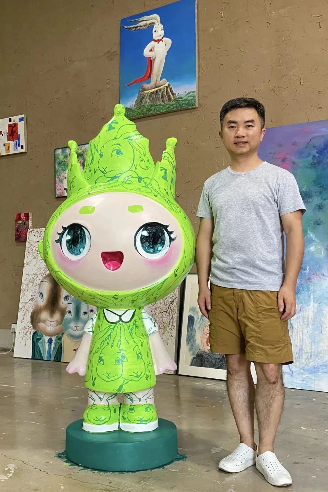(中国当代艺术家许峰创作的联名款“葱妹”雕塑)
