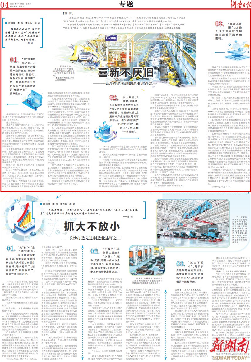 01. “旧”是指传统产业。不厌旧,代表着长沙对传统产业的态度:推动制造业高端化、智能化、绿色化发展,并不等于把一些需要改造升级的传统产业当成所谓的“低端产业”简单退出。