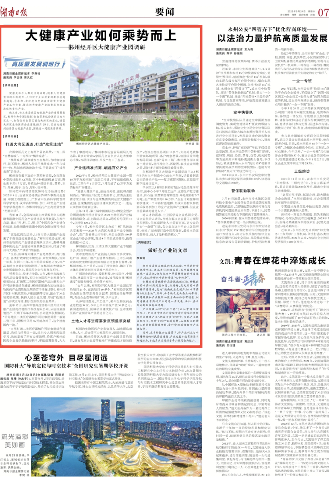 产业发展如何“对症下药”?正如中国工程院院士、广东省中医药科学院首席科学家刘良给郴州大健康产业“把脉问诊”时所言,当地产业链由短变长,从种子到种苗到药材,从粗加工到精加工到创新药物的研制,要科学规划做好全产业链文章。