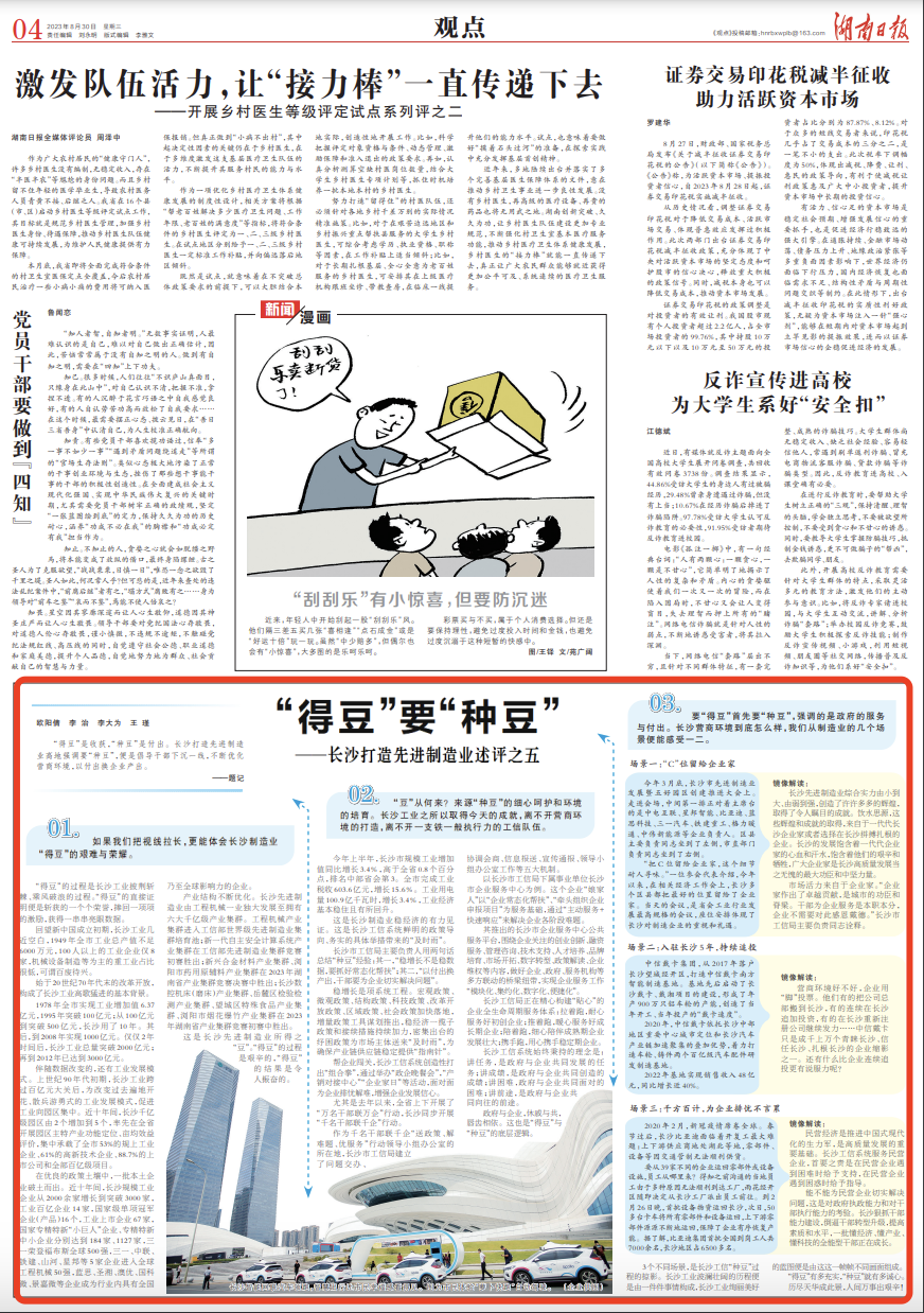 “得豆”是收获,“种豆”是付出。长沙打造先进制造业高地强调要“种豆”,便是倡导干部下沉一线,不断优化营商环境,以付出换企业产出。