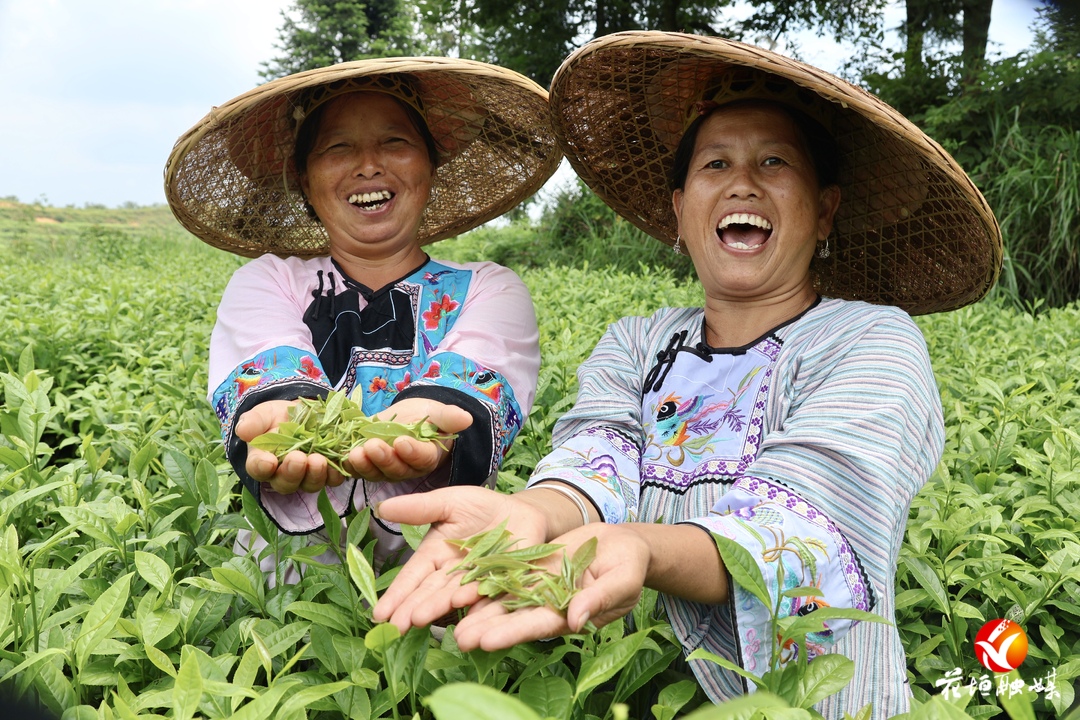 在村里千亩茶叶基地里,一垄垄茶树吐露新绿,茶农们在茶树间来回穿梭,熟练地采摘着新芽。由于茶园海拔较高,常年云雾缭绕,昼夜温差大,加上沙质土壤适合茶树生长,使这片茶园成为了名副其实的“高山云雾茶”。