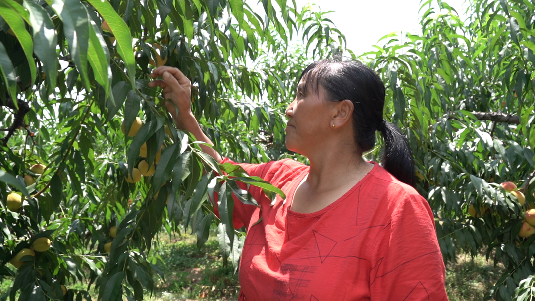 在海拔550米的桃园,村民梁章付两口子正忙着采摘鲜果。梁章付种锦绣黄桃已经12年,是村里有名的黄桃种植大户。今年,他的桃园又获得丰收。