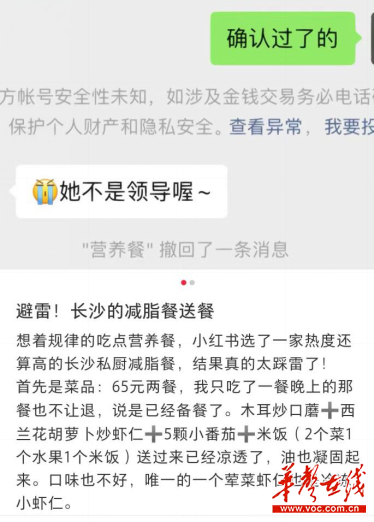 黄小姐是长沙一家会计事务所的工作人员,单位没有食堂、租住的套间也没有厨房,平时黄小姐都靠点外卖和下馆子解决吃饭问题。饭店的饭菜五味俱全,但吃久了难免有些腻味,而重油重盐的外卖风格,多少也让她有些担心营养健康……因此,当黄小姐在小红书上刷到“周卡98元、月卡799元”的轻食配送外卖时,一时间大为心动,尝试定下了一周的配餐。