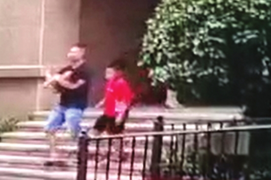 程光辉将跌落的小孩(画圈处)稳稳接住。