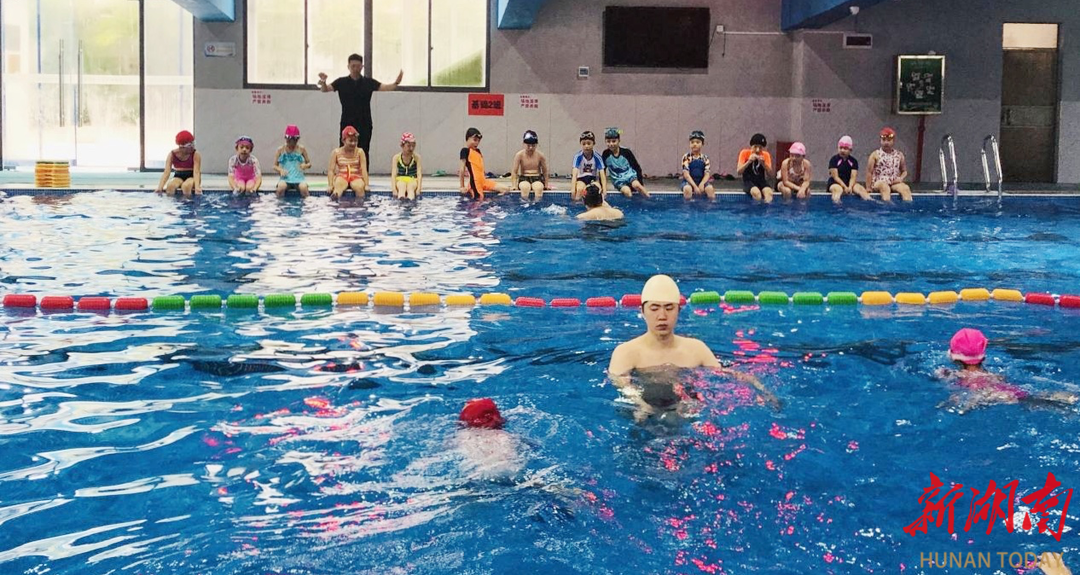 暑假期间,紧邻芙蓉区实验小学的勇往直前芙蓉区中心游泳馆内热闹非凡。25米的泳道旁,一群迫不及待入水的孩子们正跟着教练进行热身训练。他们个头不一、年级不同,但都有同样的愿望:学会游泳。