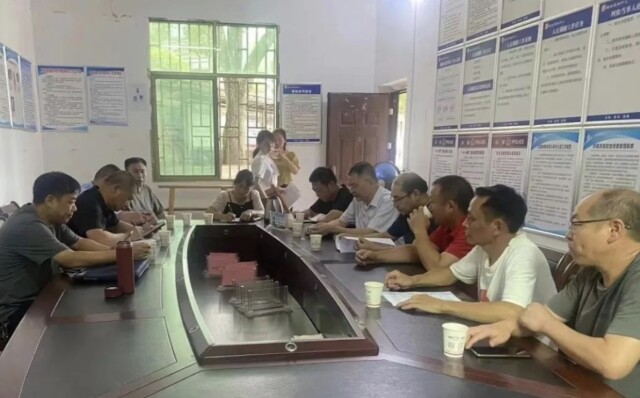 (郴州市生态环境保护督察组和瑶岗仙钨矿周边村民代表举行座谈会,了解问题整改情况。 通讯员 摄)