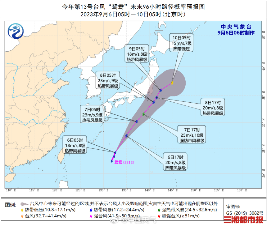 三湘都市报·新湖南客户端9月6日讯(全媒体见习记者 李致远)今年第13号台风“鸳鸯”(热带风暴级)已于5日晚上在西北太平洋洋面生成。预计,“鸳鸯”将以每小时30—40公里的速度向北偏东方向移动,强度缓慢增强。目前成一条直线趋向日本。